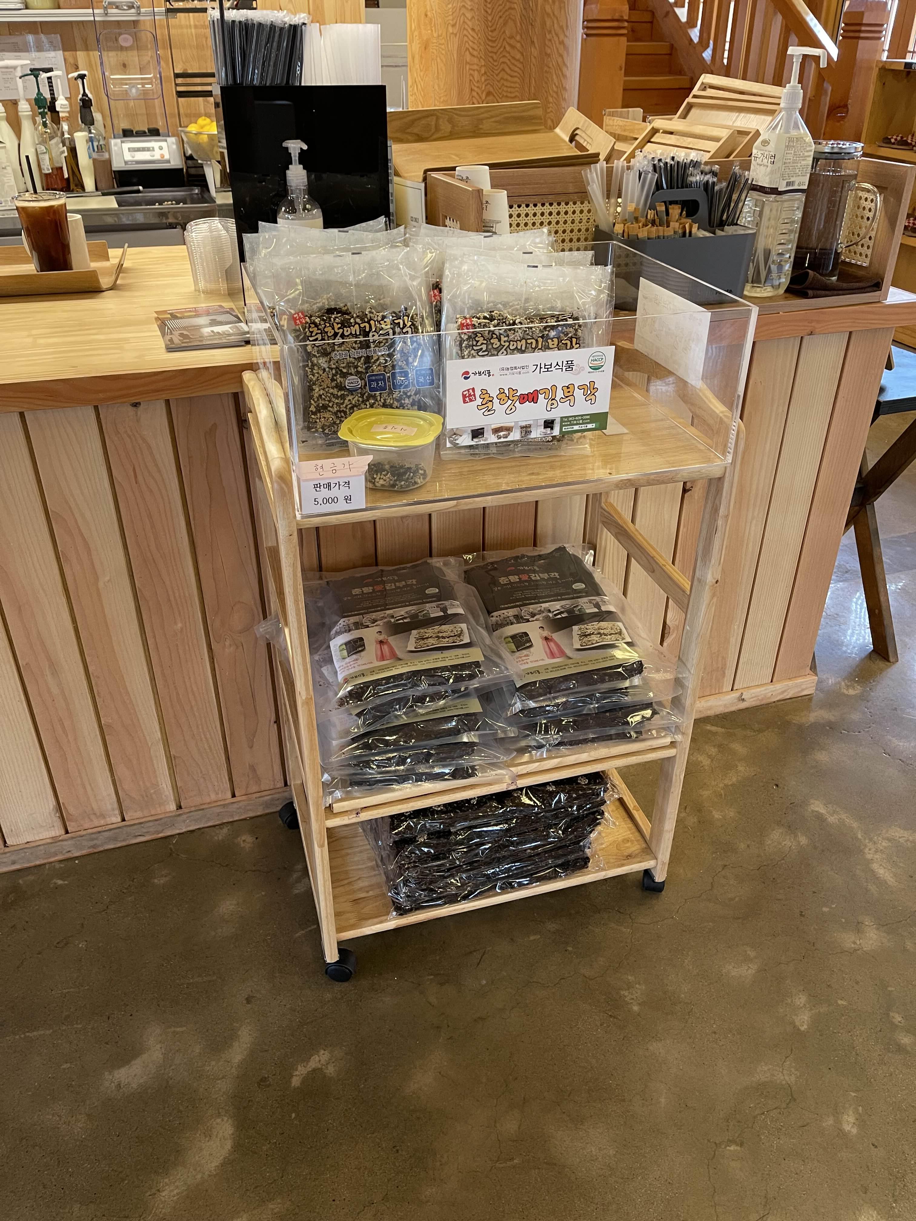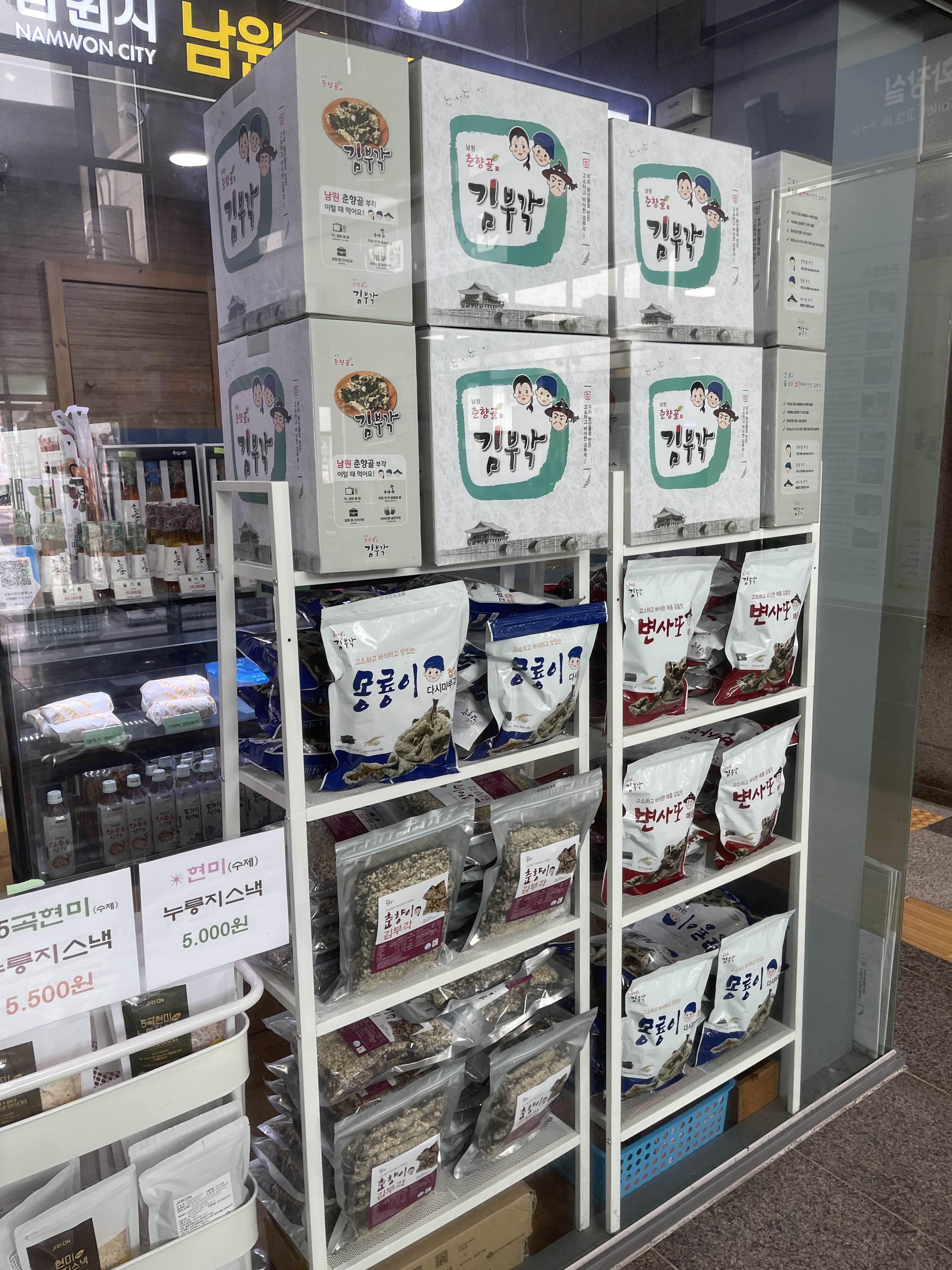 카페 겸 기념품샵에서는 김부각과 춘향빵을 살 수 있어요