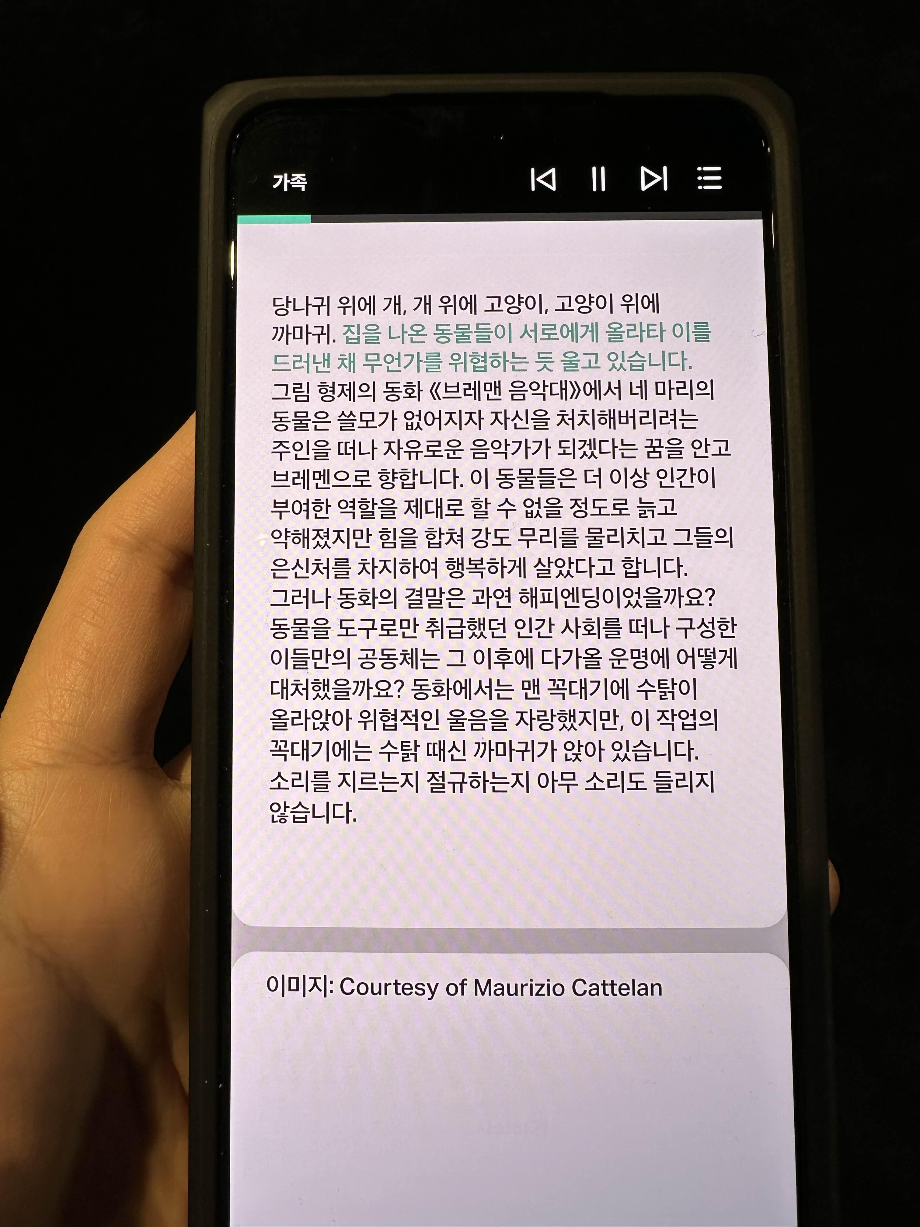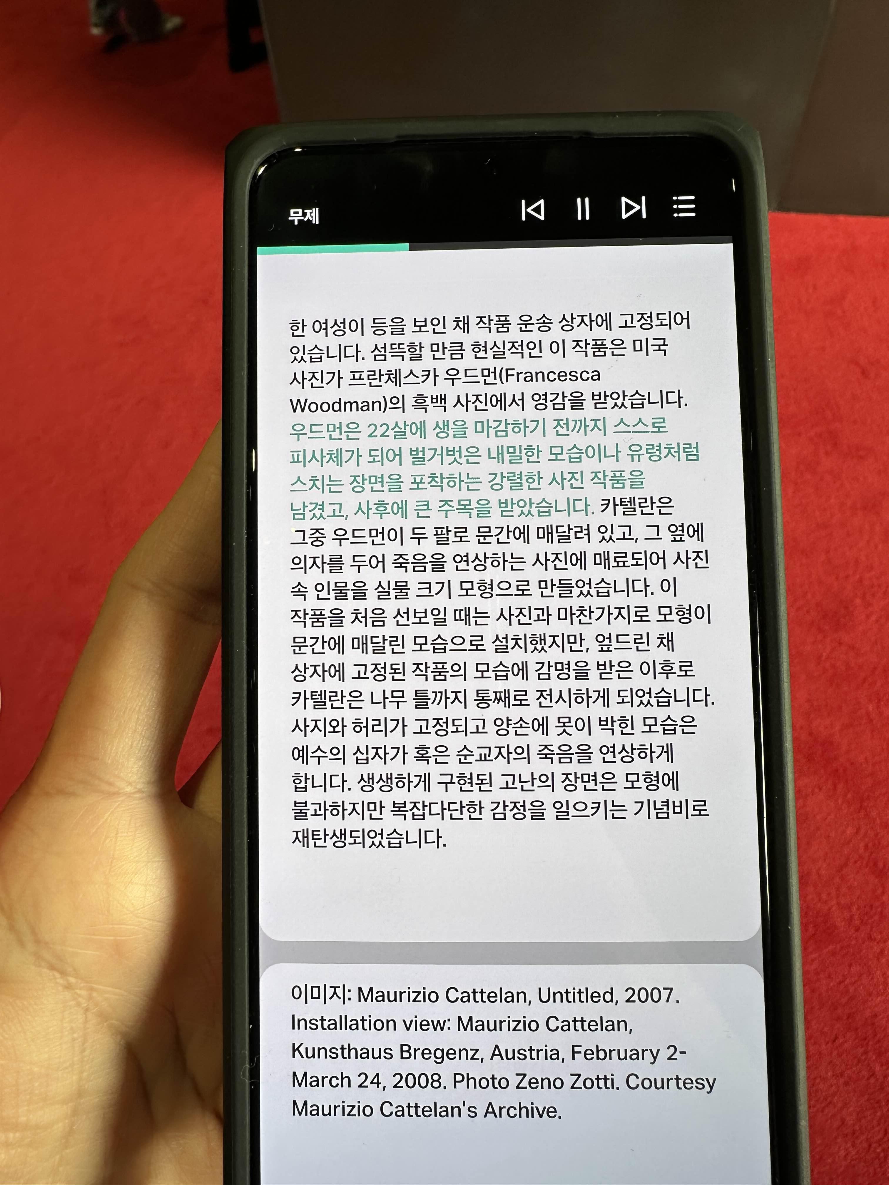 깜짝 놀랐습니다. 이게 바로 '카텔란‘ 인가 생각해봤어요.