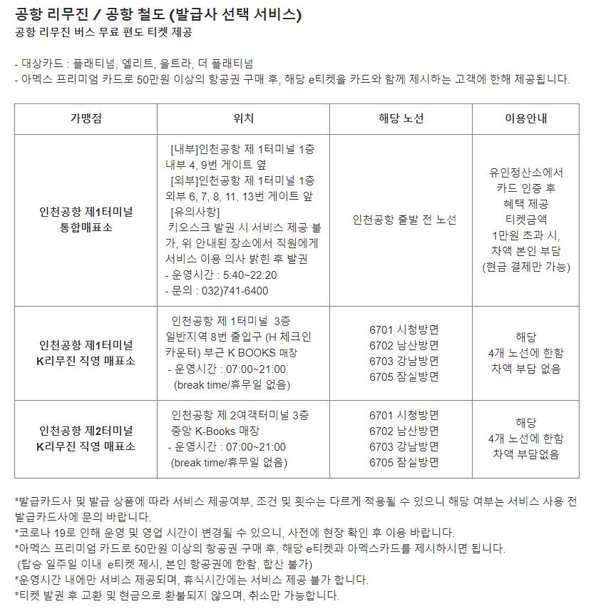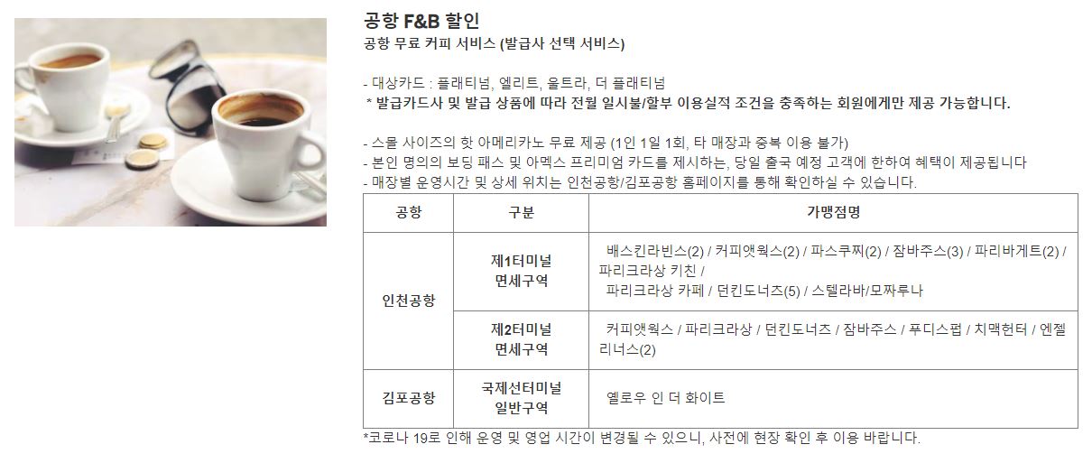 삼성 더원(The1)카드 아멕스 혜택_호텔발렛, 공항발렛, 공항라운지, 공항 커피, 공항버스, 공항철