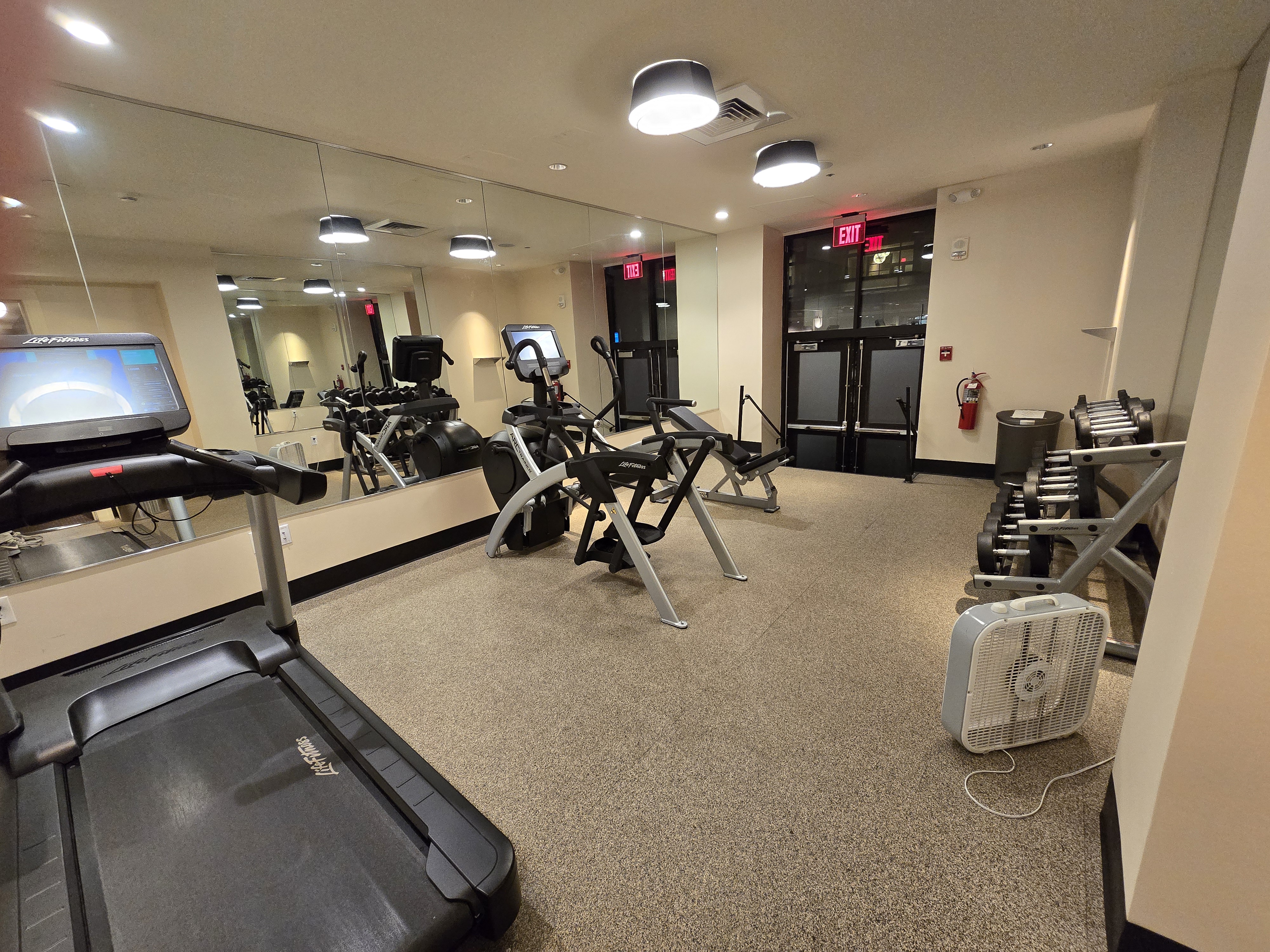 1층에 무료 커피,녹차, 전자레인지 그리고 간단한 헬스장이 있었어요 아침부터 피트니스센터에 꾸준히 사람은 있지만 1~2명 수준이에요